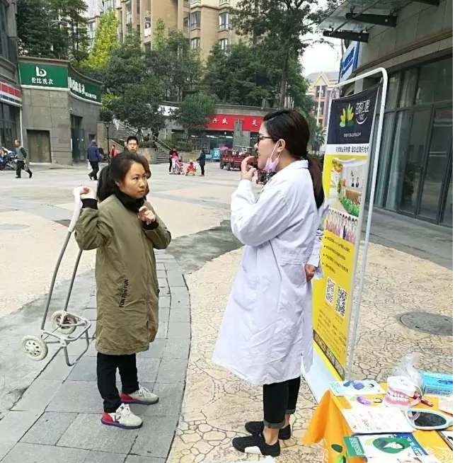 此外,茁悦口腔的另一支“温江护齿小分队”在温江公园大道旁为路人提供免费牙齿检查和咨询。